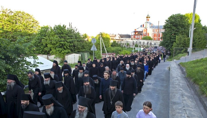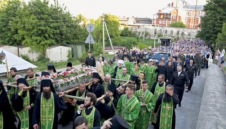 Религиозное шествие с мощами преподобного возглавил митрополит Почаевский Владимир, наместник обители, сообщает сайт Лавры.