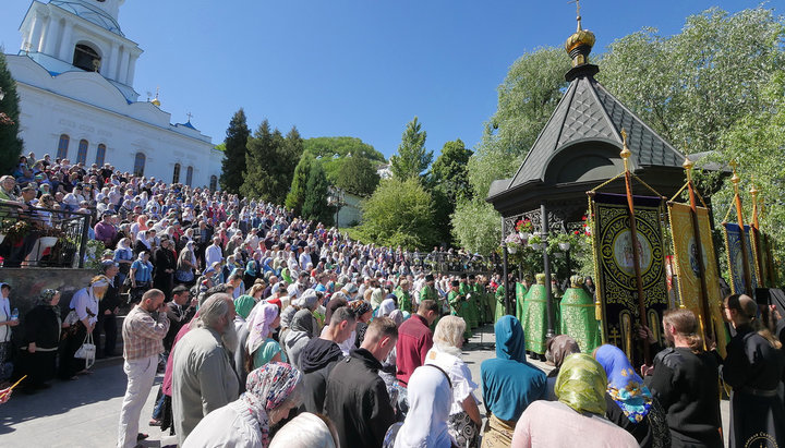 Сотни верующих Украинской Православной Церкви участвовали в крестном ходе и молебне, передает сайт Лавры.