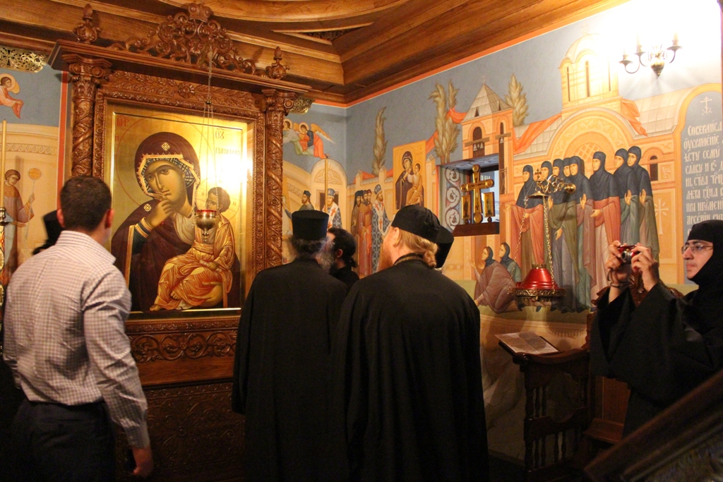 Вместе с отцом Ефремом приехала настоятельница греческого монастыря в честь Архангелов в городе Волос игумения Никодима, а также братия монастыря, сообщает сайт Ольшанской обители.