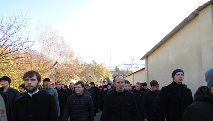 Наместник лавры митрополит Почаевский Владимир и ректор семинарии епископ Шумский Иов возглавили крестный ход с мощами преподобного Иова вокруг обители, после которого ковчег со святыней установили для поклонения верующих в главном соборе монастыря.