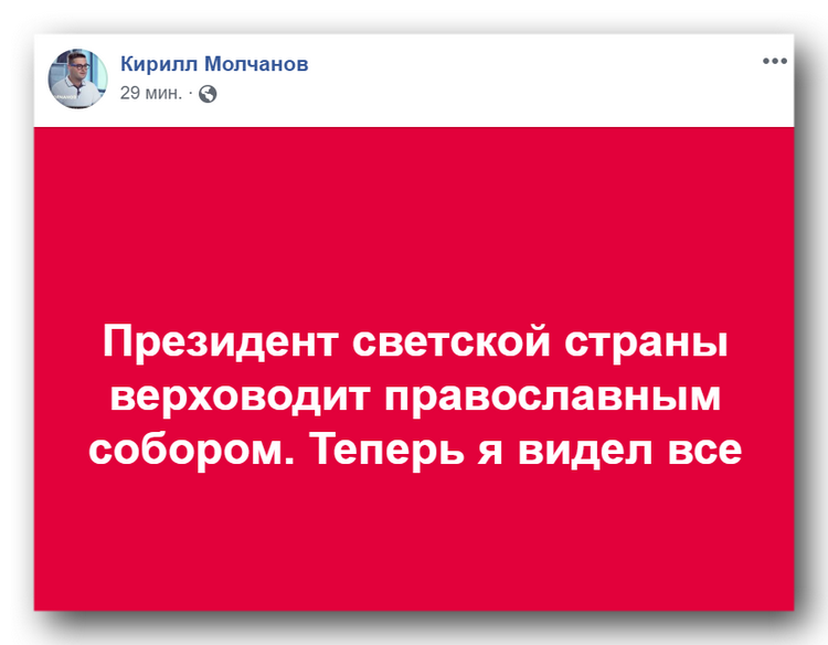 12:50 «Симбиоз комсомольцев и Госдепа... рожает церковную мышь», – пишет в Facebook обозреватель Руслан Бизяев.