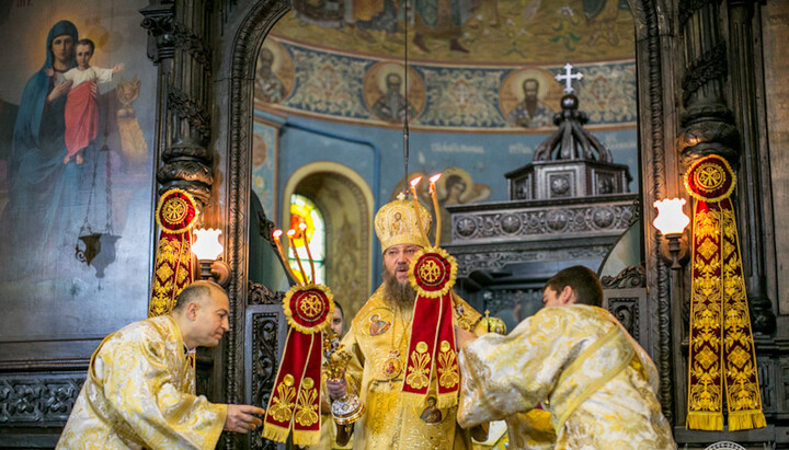 За Божественной литургией также сослужили игумен болгарского монастыря Зограф на Афоне архимандрит Амвросий, представитель Русской Православной Церкви при БПЦ архимандрит Вассиан (Змеев), представитель Румынской Православной Церкви при БПЦ протоиерей Нелуц Опря, заместитель Председателя ОВЦС УПЦ протоиерей Николай Данилевич, болгарское духовенство и другие гости в священном сане. За богослужением молились представители государственной власти и общественных кругов местного уровня.