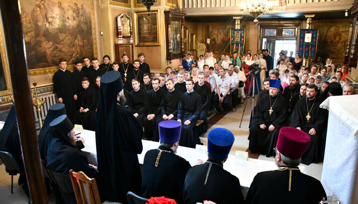 Правящему архиерею сослужили ректор ВДС архимандрит Евмений (Михалевский), преподаватели, выпускники и их родители в священном сане.