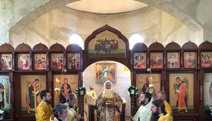 Его Высокопреосвященству сослужили настоятель храма протоиерей Александр Лендел и приглашенное духовенство. При освящении храма архиерей совершил чин освящения антиминсов для приходов Мукачевской епархии.