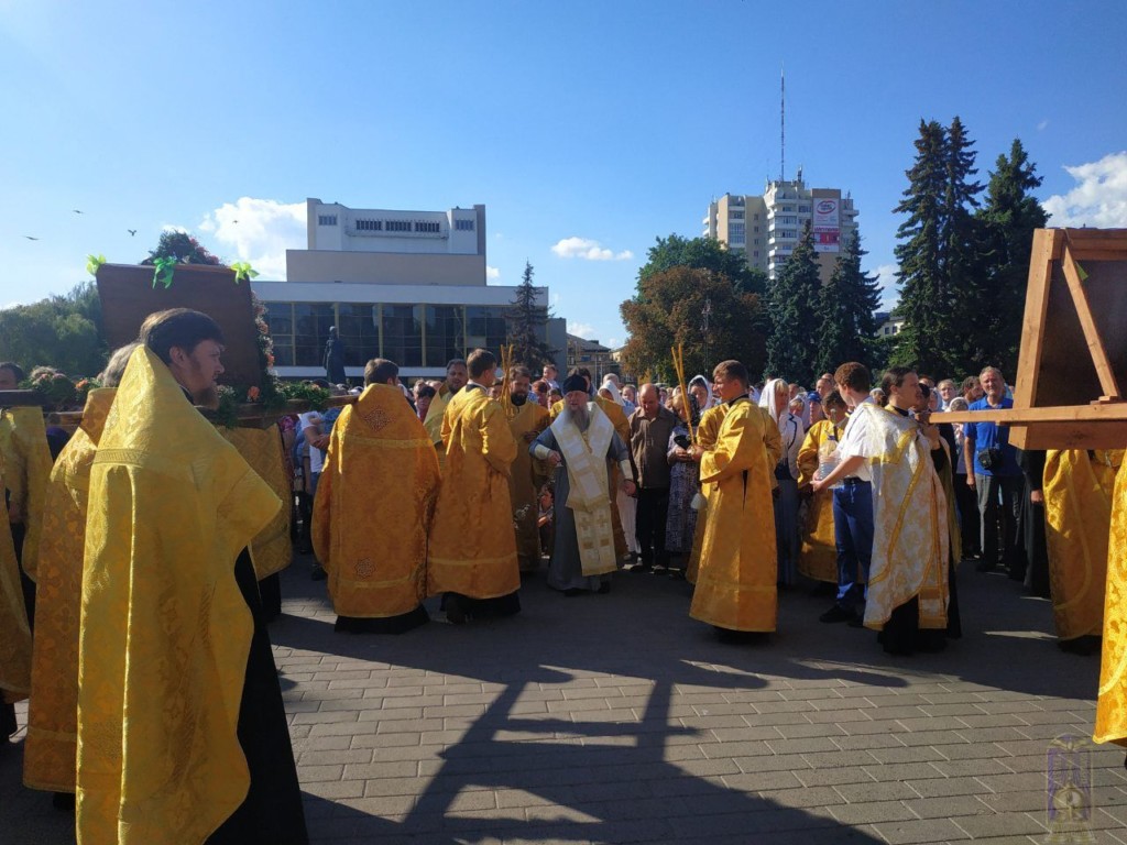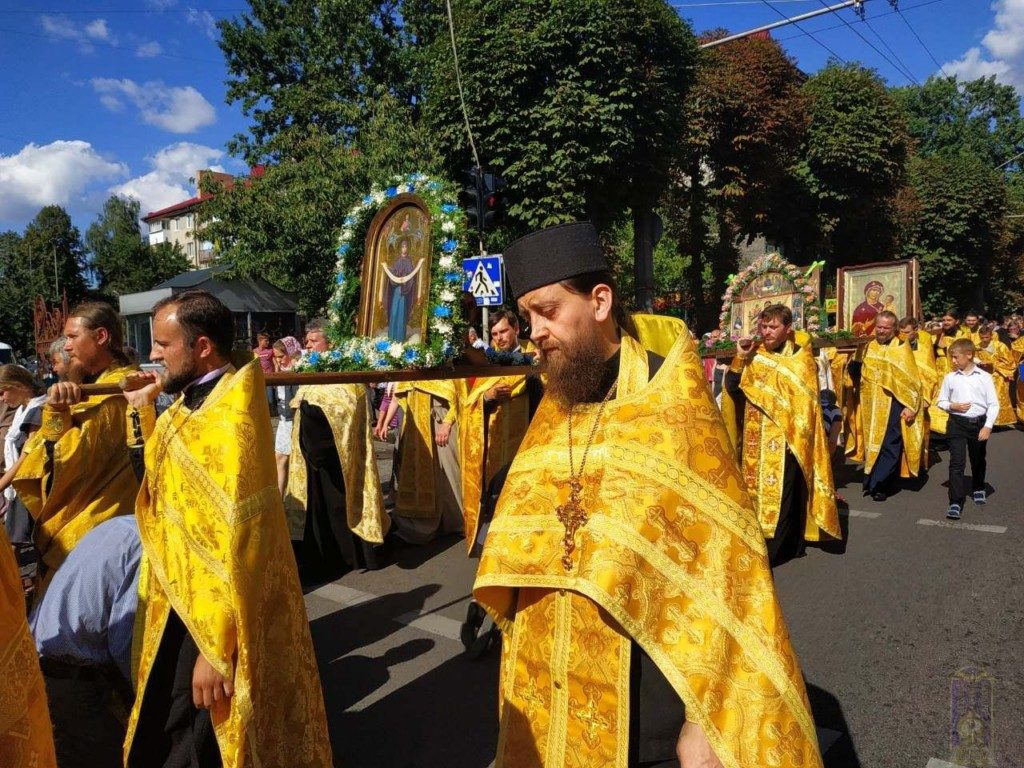 Священнослужители и верующие прошли по центральным улицам города, перенеся святыни луцкого кафедрального собора Всех святых Земли Волынской – копию чудотворной иконы Божией Матери «Пантанасса», ковчег с частицами честных мощей святых угодников Божиих, икону Покрова Пресвятой Богородицы и икону Всех святых Земли Волынской – в Свято-Покровский храм.