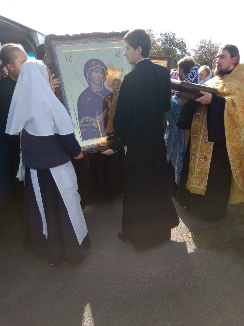 Участники молитвенного шествия ко дню Всех святых земли Волынской доставили в Жидычин Тихвинскую икону Пресвятой Богородицы и икону святых Жен-Мироносиц, а также мощевик с частицами нетленных мощей святых.