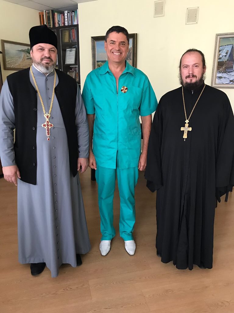 На встрече также присутствовал протоиерей Павел Козарь – настоятель храма в честь иконы Пресвятой Богородицы «Помощница в родах», обустроенного при медицинском центре.