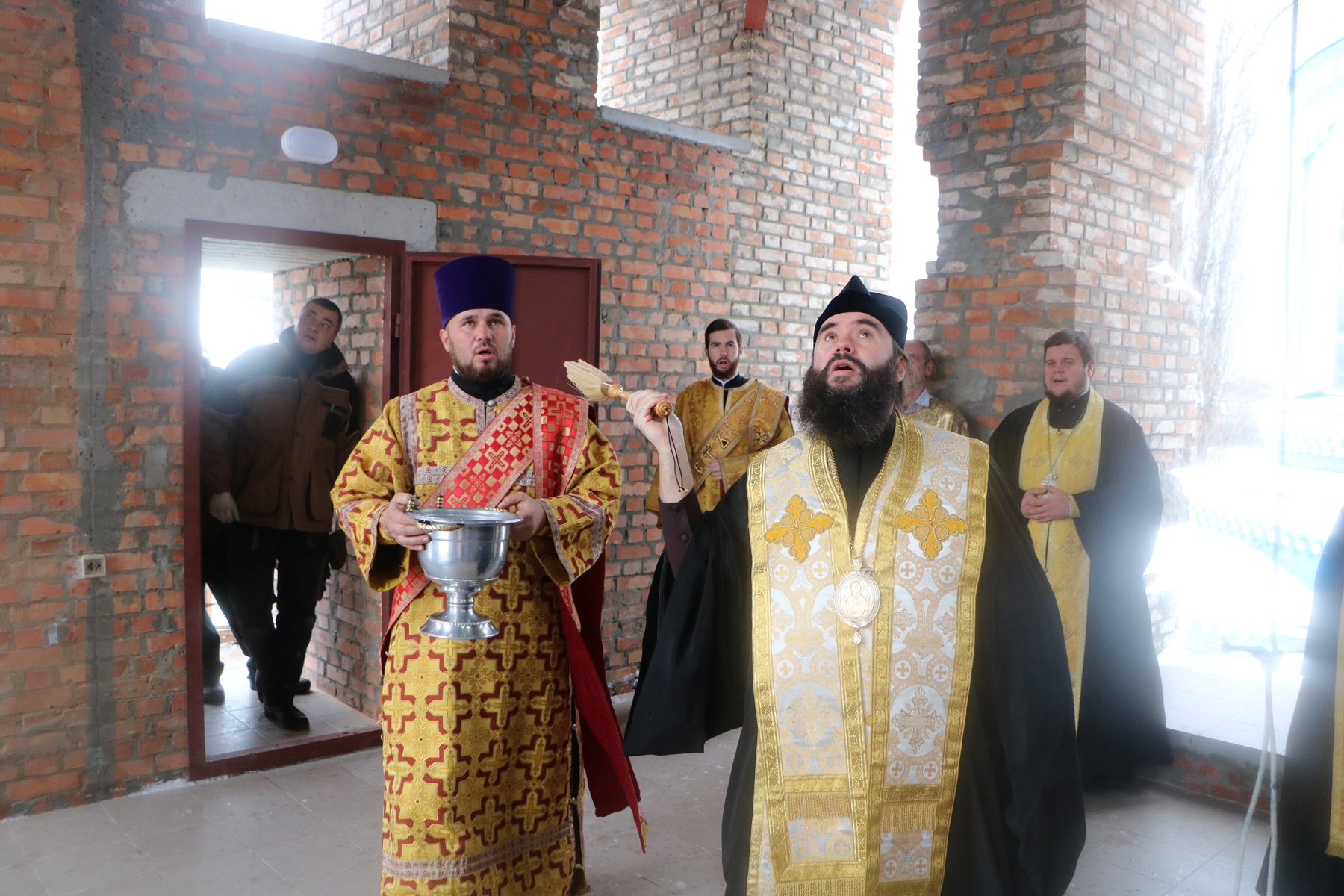 В завершение архипастырского визита управляющий Днепропетровской епархией ознакомился с ходом работ по строительству колокольни.