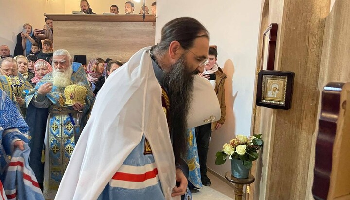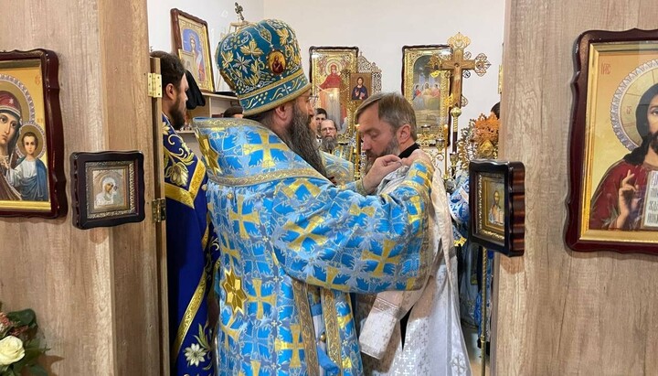 Иерарх УПЦ поздравил настоятеля храма с совершением первой Божественной литургии в новом городском храме.