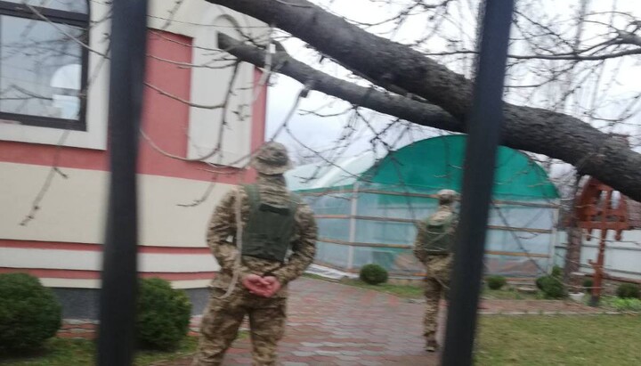 Около 6:30 к церкви подъехало около 30 человек – группа активистов ПЦУ из других населенных пунктов во главе с депутатом Бучанского горсовета от «Слуги народа» Вячеславом Кухаренко и бойцы теробороны. Активисты срезали замки на воротах и на дверях храма и вошли внутрь.