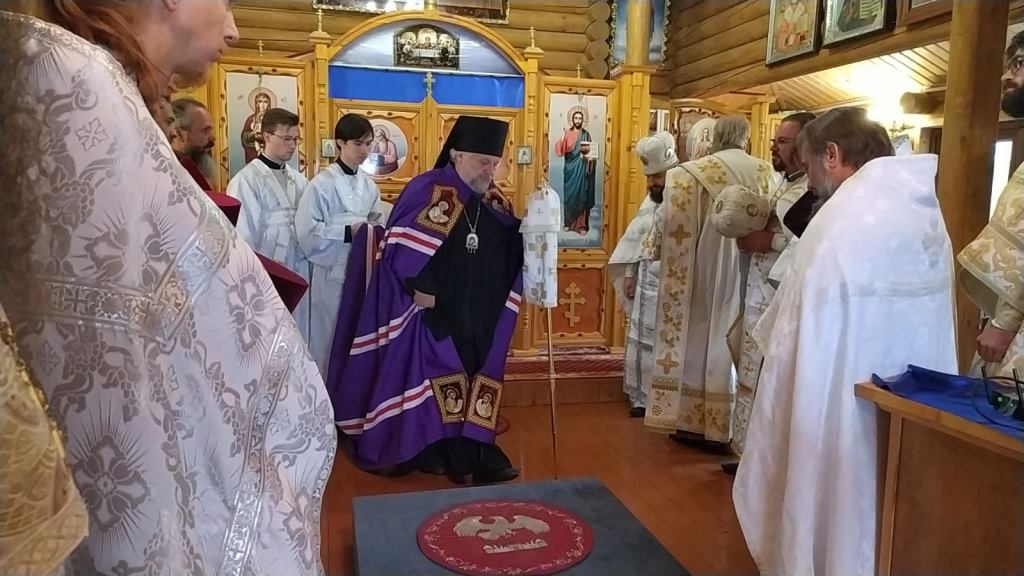 Во время освящения храма в честь иконы Пресвятой Богородицы «Отрада и Утешение» митрополит Лазарь наградил его прихожан за труды по благоукрашению церкви.