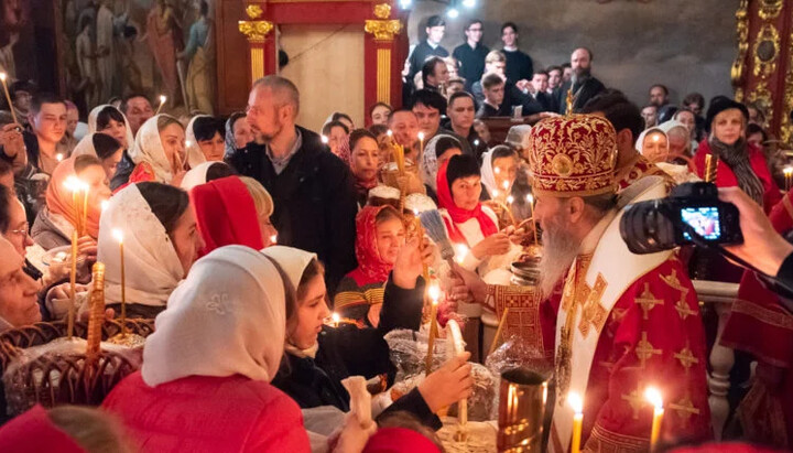 Блаженнейший возглавил Пасхальное богослужение в Киево-Печерской лавре