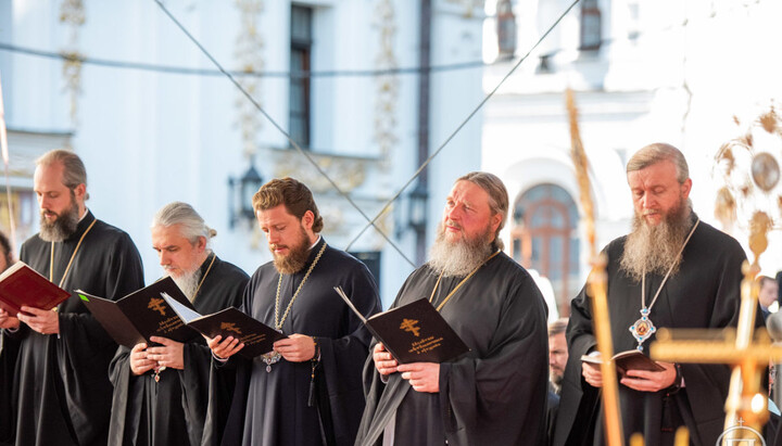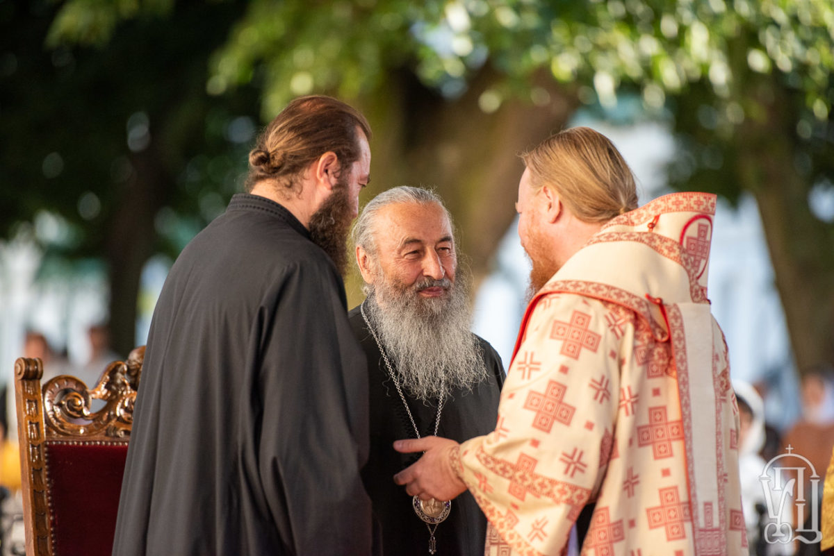 Предстоятелю сослужили председатель Церковного суда УПЦ митрополит Каменец-Подольский и Городокский Феодор, наместник Киево-Печерской обители митрополит Вышгородский и Чернобыльский Павел, управляющий делами УПЦ митрополит Бориспольский и Броварской Антоний, митрополиты, архиепископы и епископы Украинской Православной Церкви, духовенство Лавры и гости в священном сане.