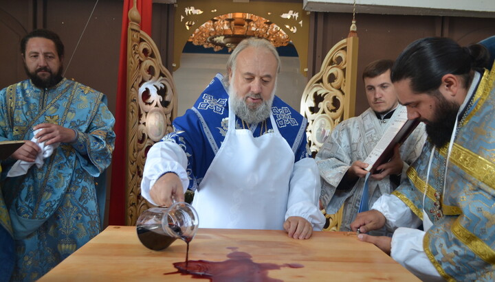 Архиерею сослужили благочинный Ладыжинского округа протоиерей Георгий Орос, протоиерей Вадим Паевский, протоиерей Николай Ищенко, настоятель храма иерей Сергий Бас и протодиакон Петр Вирста.