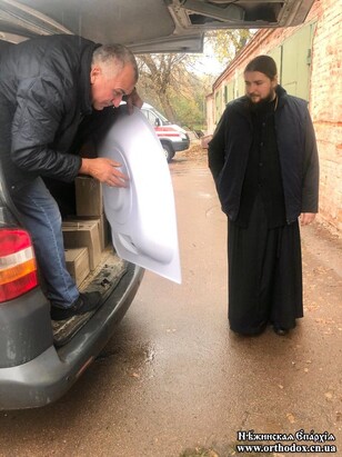 Нежинский архиерей и духовенство епархии привезли медикам сантехнику, необходимую для обустройства санитарной комнаты в отделении, сотрудники которого лечат «коронавирусных» больных.