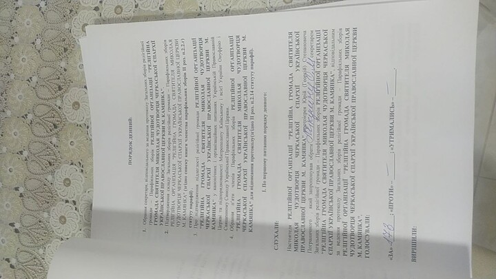 В то же время, пока проводилось фейковое собрание в парке, в самом храме религиозная община провела свое законное собрание, на котором единогласно решила остаться в УПЦ с Блаженнейшим Онуфрием. В протоколе собрания стоит 173 подписи.