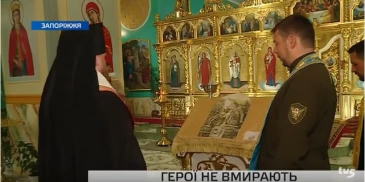 В Сети напомнили, как «священнослужители» ПЦУ «освятили» гипсовый барельеф под названием «Икона памяти погибшим за независимую Украину», на котором вместо Божией Матери изображена «Украина-берегиня», обнимающая воина. Видеосюжет, рассказывающий о событии в кафедральном соборе ПЦУ в Запорожье, в 2019 году был опубликован на YouTube-канале «Телеканал TV5».