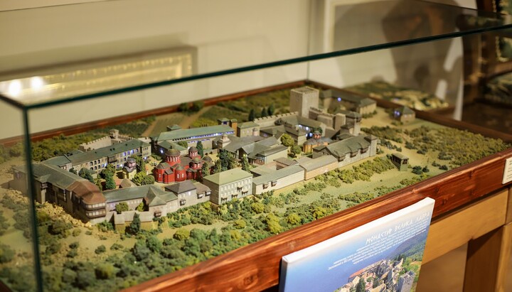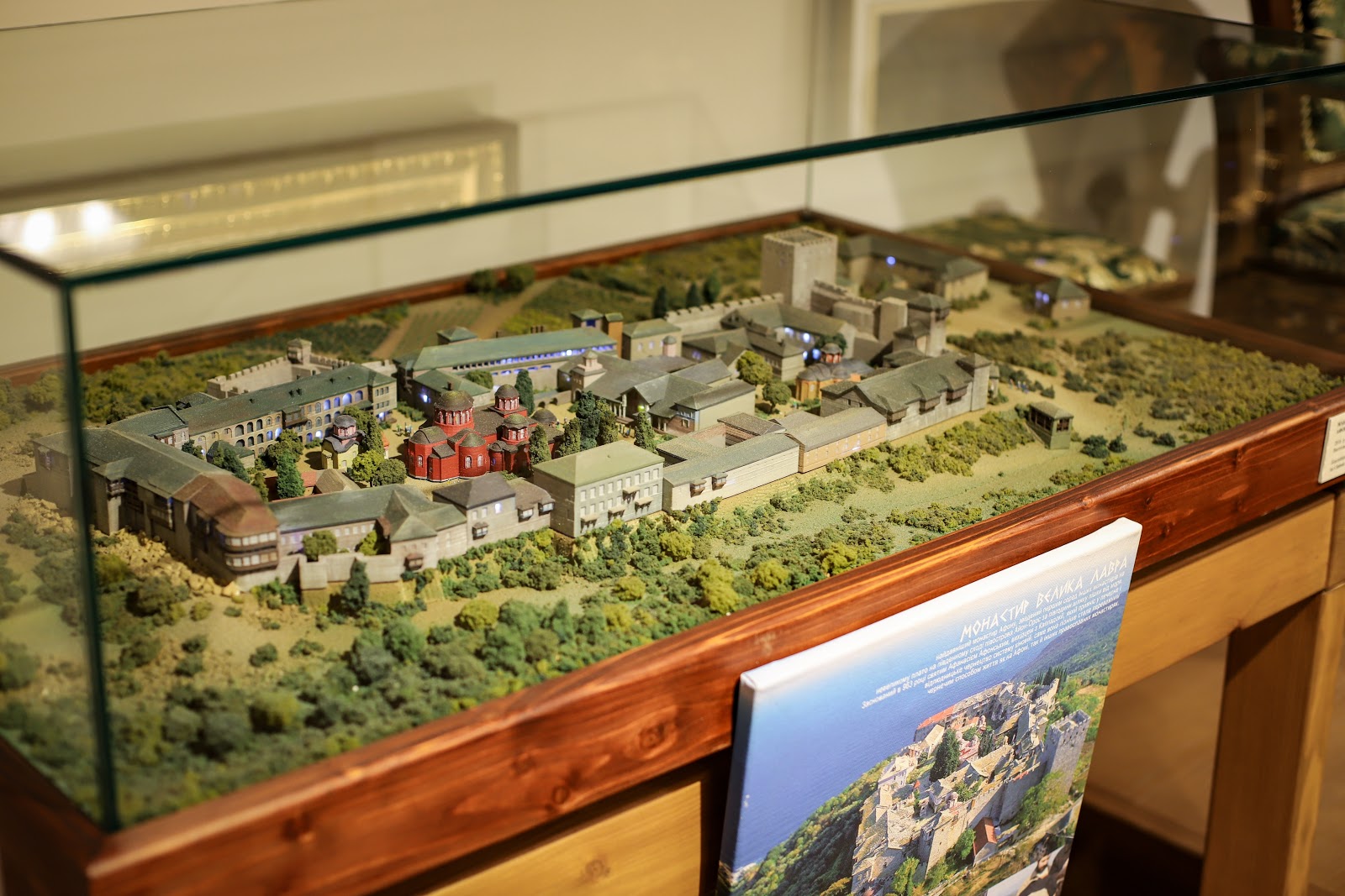 В музее-галерее разместились уникальные экспонаты, переданные фондом «Православное наследие Украины на Святой Горе Афон». Среди них – большой 3D-макет Святой Горы Афон (2,5 м на 0,9 м, вес 180 кг) и Великой Лавры (1,2 м на 0,85 м) и коллекция из 20 картин «Живописный Афон в украинских красках» заслуженного художника Украины Василия Красехи. Также в экспозиции представлены подарки афонского монастыря Ксенофонт – облачения, крест, фотоальбомы, книги и др.
