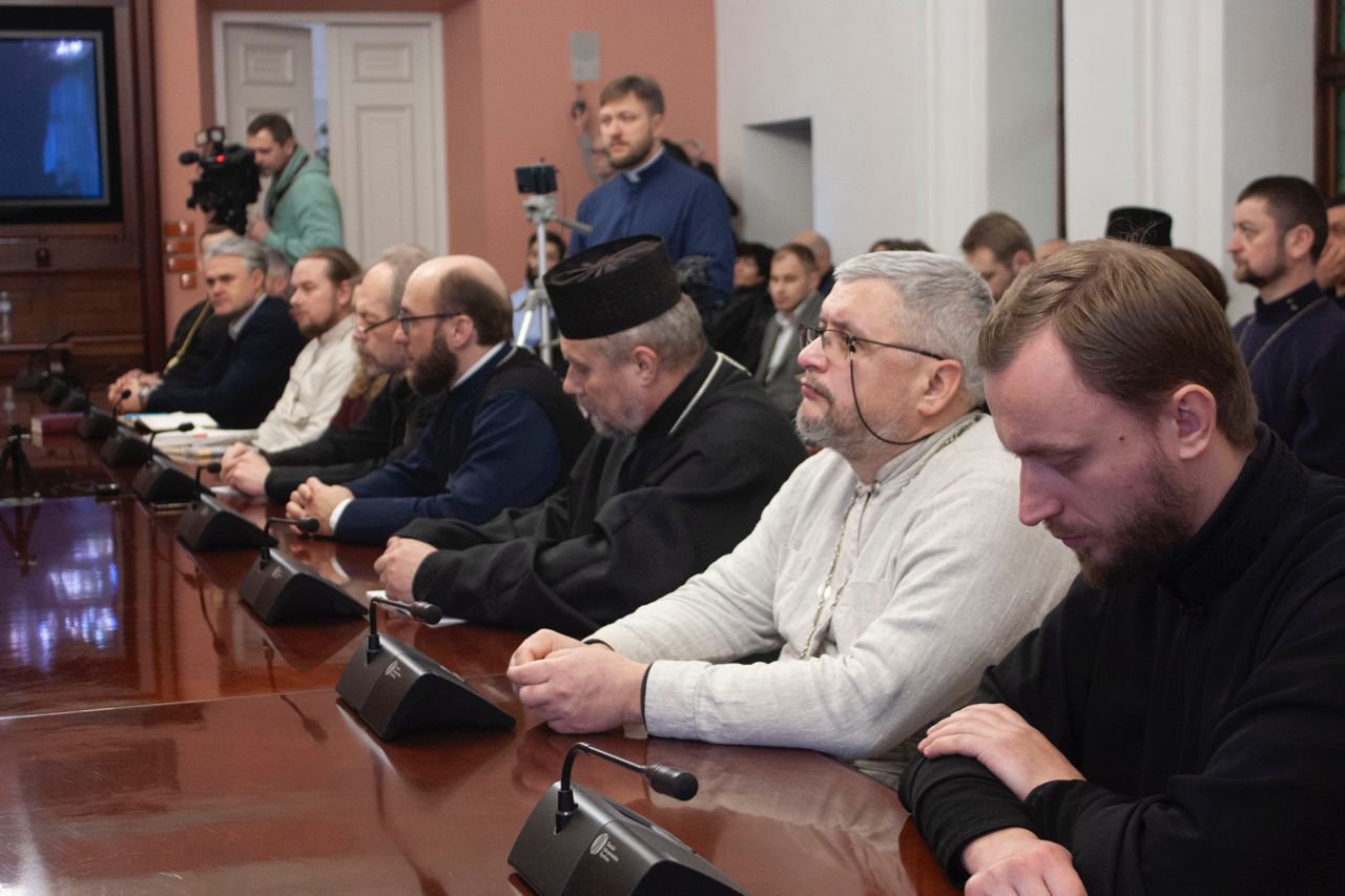 В частности, в круглом-столе «Церковь, общество, государство: диалог ради единения и победы» участвовали заштатный клирик УПЦ Андрей Пинчук, священники Владимир Сорокин, Владимир Давыдов, Сергей Баршай, клирик ПЦУ Георгий Коваленко, глава ГЭСС Виктор Еленский, философ Александр Филоненко, эксперт ГЭСС Андрей Смирнов и экзарх Фанара епископ Команский Михаил. Последний присутствовал на встрече в роле наблюдателя.