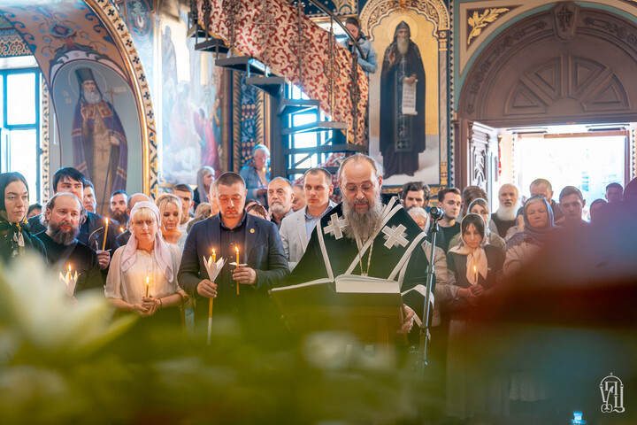 Предстоятелю сослужили управделами УПЦ митрополит Бориспольский и Броварской Антоний, митрополит Макаровский Антоний, митрополит Львовский и Галицкий Филарет, епископ Ирпенский Лавр, епископ Бородянский Марк и духовенство монастыря.