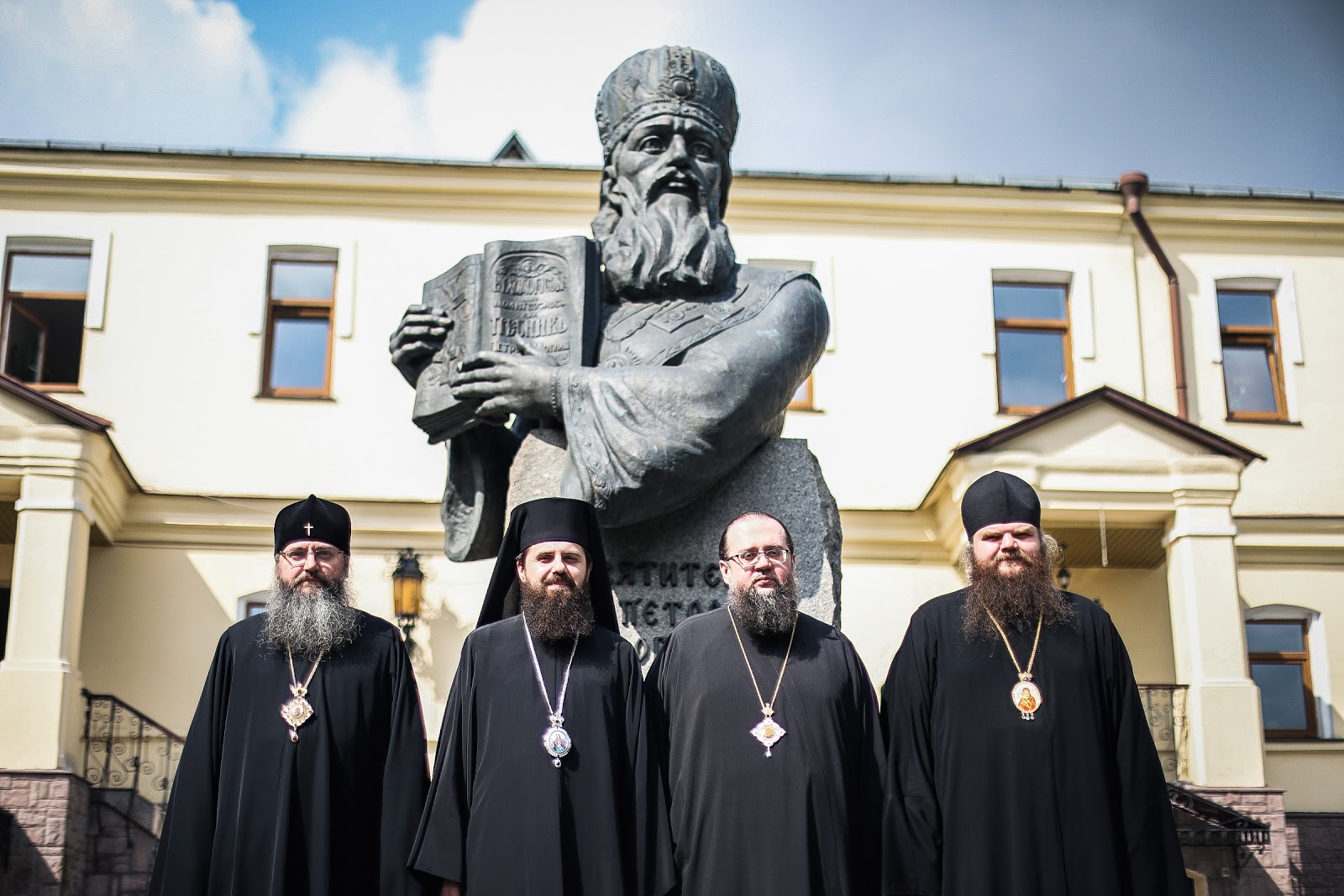 Стороны обменялись памятными подарками и сфотографировались у памятника основателю Киевских духовных школ – святителю Петру Могиле.