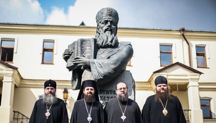 Епископ Венедикт (Веса) посетил церковно-археологический музей КДАиС и сфотографировался вместе со священнослужителями УПЦ у памятника святителю Петру Могиле.