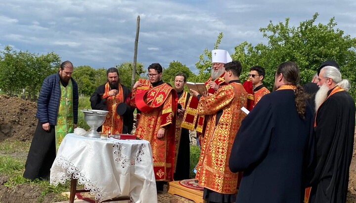 Перед началом строительства новой церкви Черновицкий архиерей заложил первый камень.