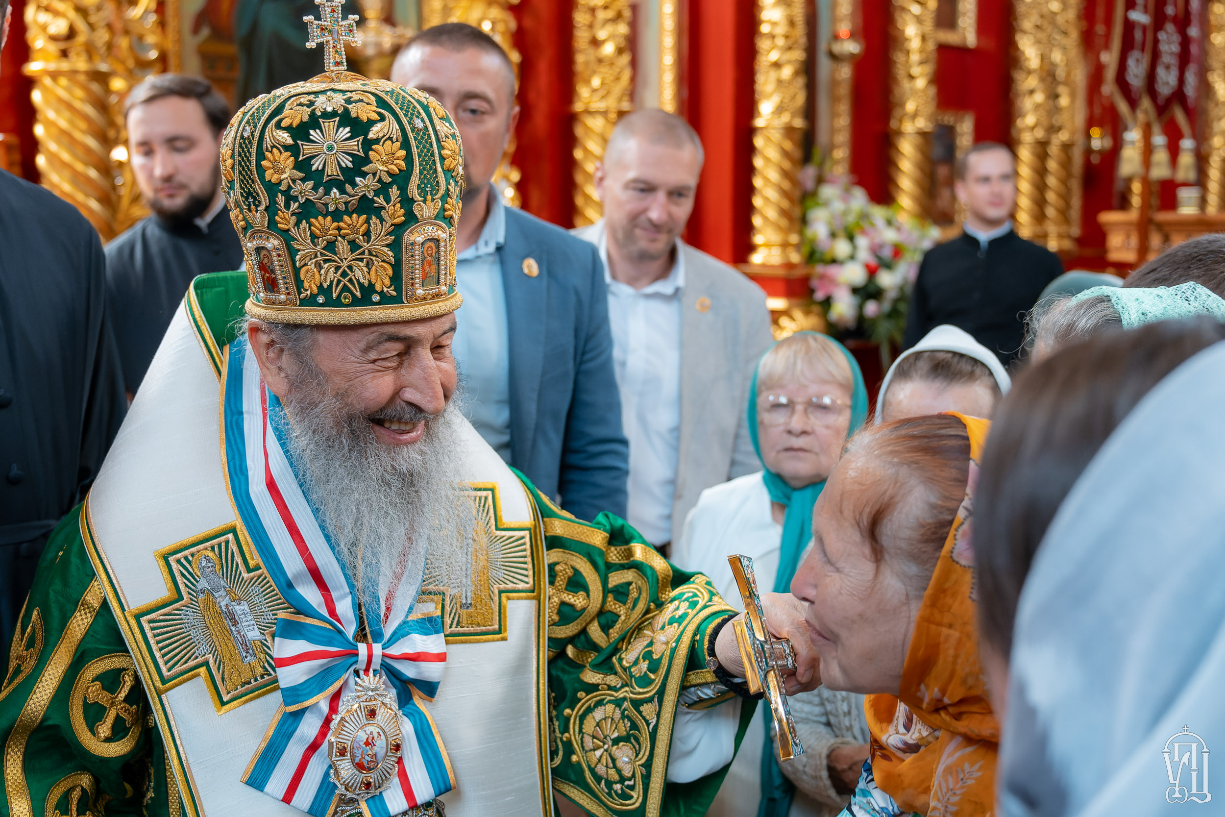 После литургии с днем небесного покровителя Предстоятеля УПЦ поздравили священнослужители и верующие, которые молились на праздничной службе.
