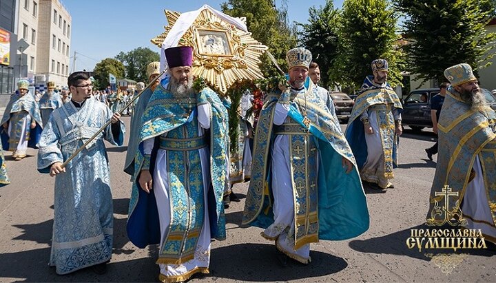 В Сумской епархии УПЦ правящий архиерей и более 100 священнослужителей участвовали в празднике в честь чудотворной Ахтырской иконы Божией Матери.