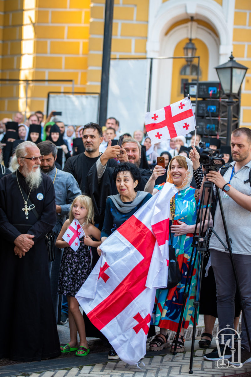 В завершение прозвучали поздравления Предстоятелю УПЦ с Днем Крещения Руси от представителей Поместных Церквей. Блаженнейший Митрополит Онуфрий поблагодарил всех гостей, прибывших на празднования в Киев, а паломникам из Грузии передал приветствие для Патриарха Илии.