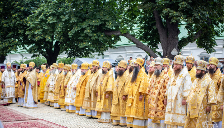 Блаженнейшему сослужили митрополиты, архиепископы, епископы и духовенство УПЦ, а также гости из Поместных Православных Церквей: делегация Антиохийской Церкви во главе с секретарем Священного Синода Антиохийского Патриархата епископом Селевкийским Ефремом, делегация Сербской Церкви – викарии Патриарха Сербского епископы Ремесианский Стефан и Топличский Иерофей, и представитель Православной Церкви Чешских земель и Словакии архиепископ Пражский Михаил.