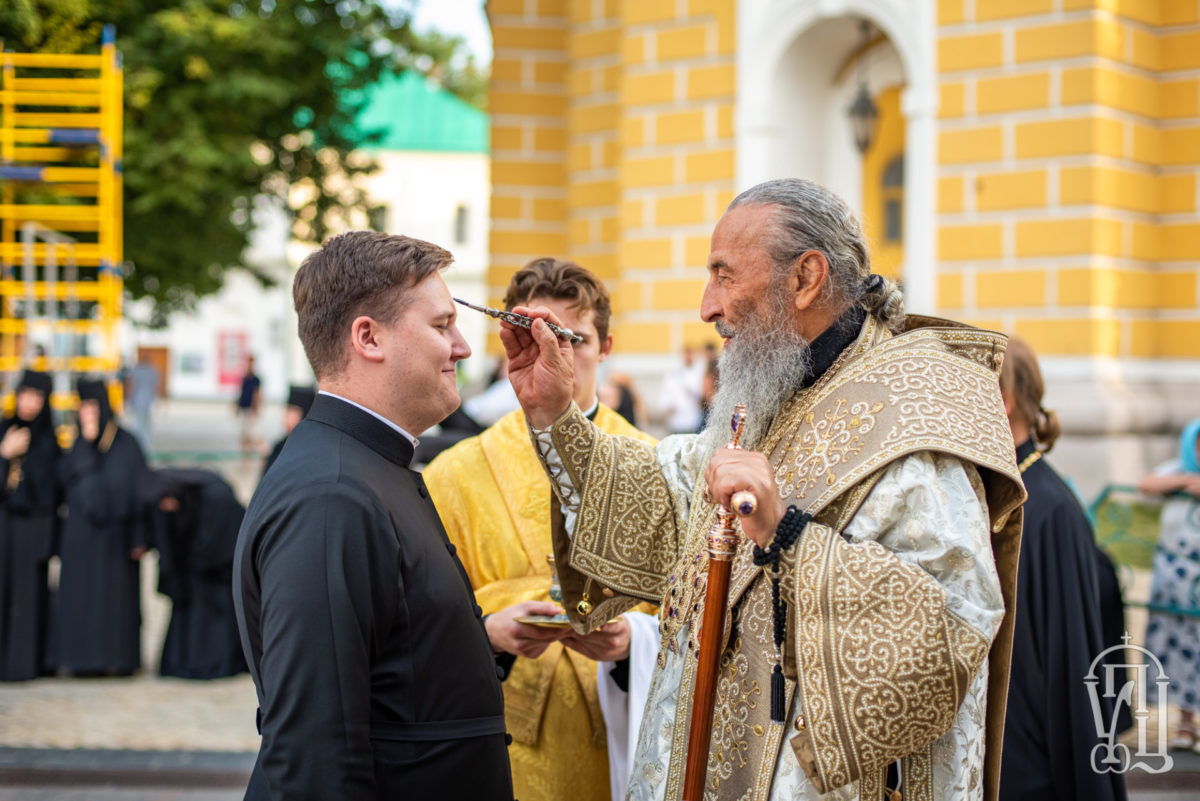 Блаженнейшему сослужили глава Церковного суда УПЦ митрополит Каменец-Подольский и Городокский Феодор, наместник обители митрополит Вышгородский и Чернобыльский Павел, митрополиты, архиепископы и епископы Украинской Православной Церкви, духовенство Киево-Печерской лавры, Киевской епархии и гости в священном сане.
