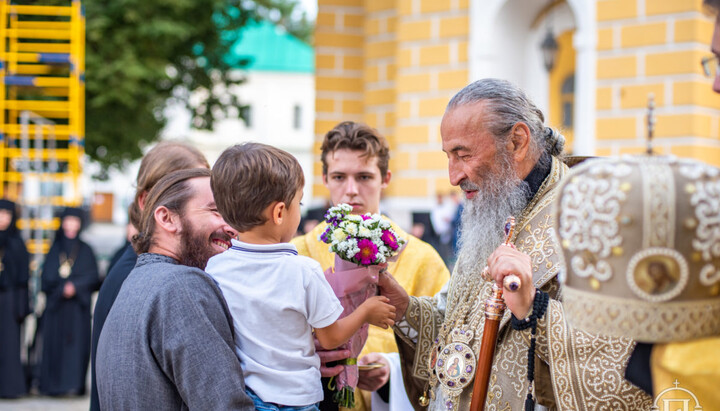 Блаженнейшему Онуфрию во время богослужения в Киево-Печерской обители сослужили епископат и духовенство Украинской Православной Церкви.