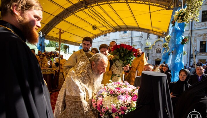 За Божественной литургией сослужили митрополит Одесский и Измаильский Агафангел, митрополит Хустский и Виноградовский Марк, председатель Церковного суда УПЦ митрополит Каменец-Подольский и Городокский Феодор, наместник лавры митрополит Вышгородский и Чернобыльский Павел, управляющий делами УПЦ митрополит Бориспольский и Броварской Антоний, сонм епископов Украинской Православной Церкви, иерарх Православной Церкви Молдовы епископ Сорокский Иоанн, духовенство лавры и Киевской епархии, а также гости в священном сане.