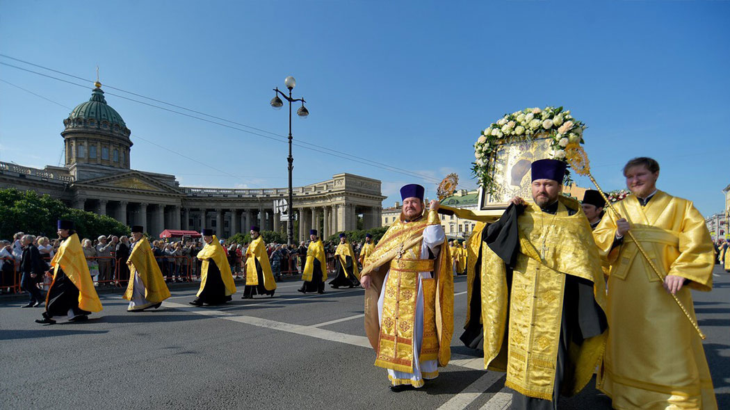 Крестный ход завершился праздничным молебном на площади перед Александро-Невской лаврой.