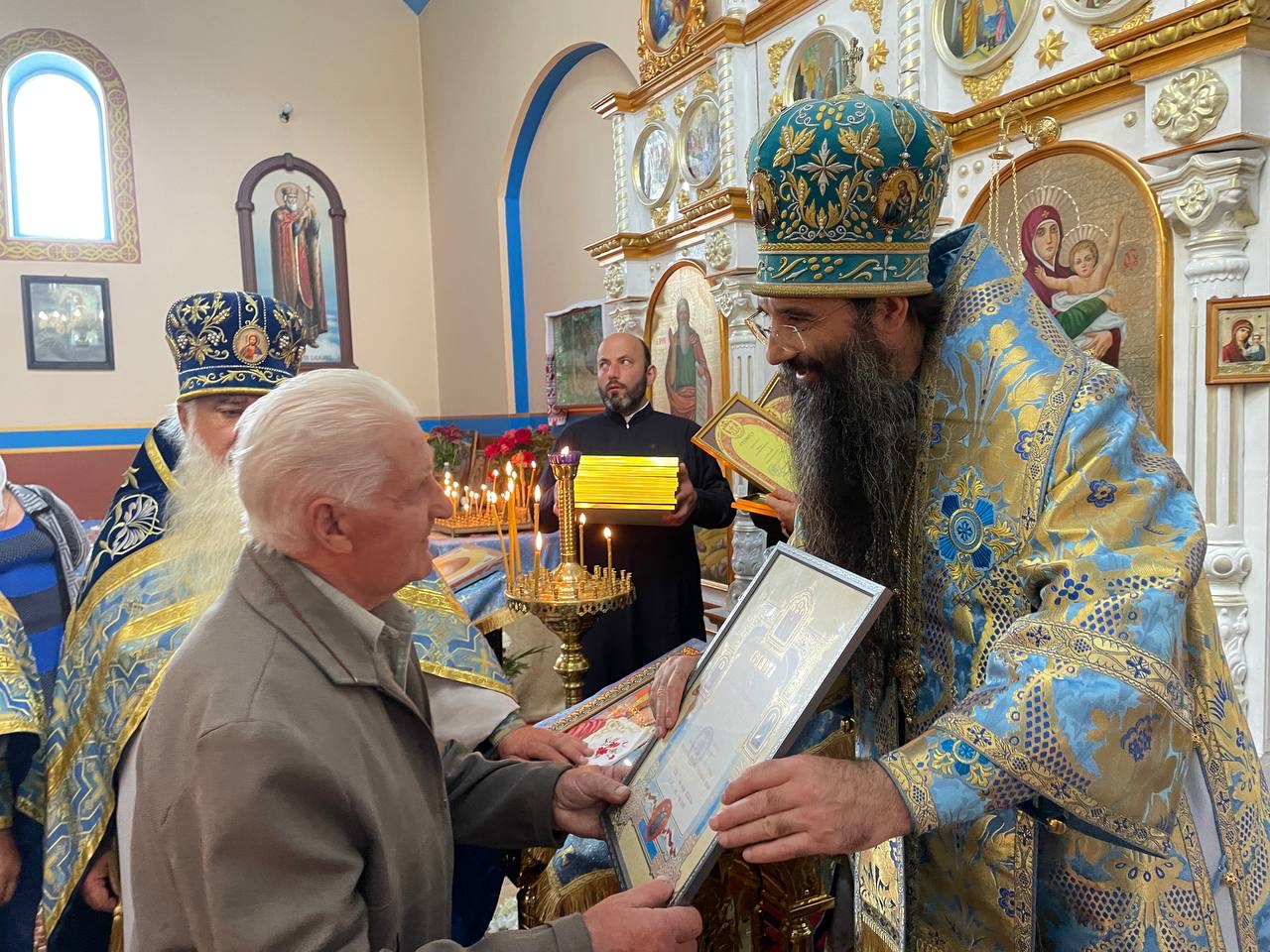 Также архиерей вручил Грамоту Предстоятеля УПЦ активному помощнику настоятеля храма Корнету Николаю Емельяновичу и другим прихожанам, которые принимали активное участие в строительстве храма.