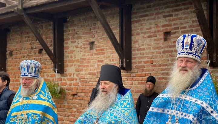 Архипастырю сослужили глава Синодальной комиссии по делам монастырей УПЦ митрополит Вышгородский и Чернобыльский Павел, управляющий делами УПЦ митрополит Бориспольский и Броварской Антоний, иерарх Польской Православной Церкви архиепископ Вроцлавский и Щетинский Георгий, митрополит Белоцерковский и Богуславский Августин, митрополит Полесский и Сарненский Анатолий, митрополит Почаевский Владимир, митрополит Житомирский и Новоград-Волынский Никодим, митрополит Владимир-Волынский и Ковельский Владимир, архиепископ Фастовский Дамиан, архиепископ Волынский и Луцкий Нафанаил, епископ Белогородский Сильвестр, епископ Дубенский Пимен, епископ Вишневский Спиридон, епископ Ирпенский Лавр, епископ Бородянский Марк, епископ Камень-Каширский Афанасий, духовенство монастыря и гости в священном сане из епархий УПЦ.