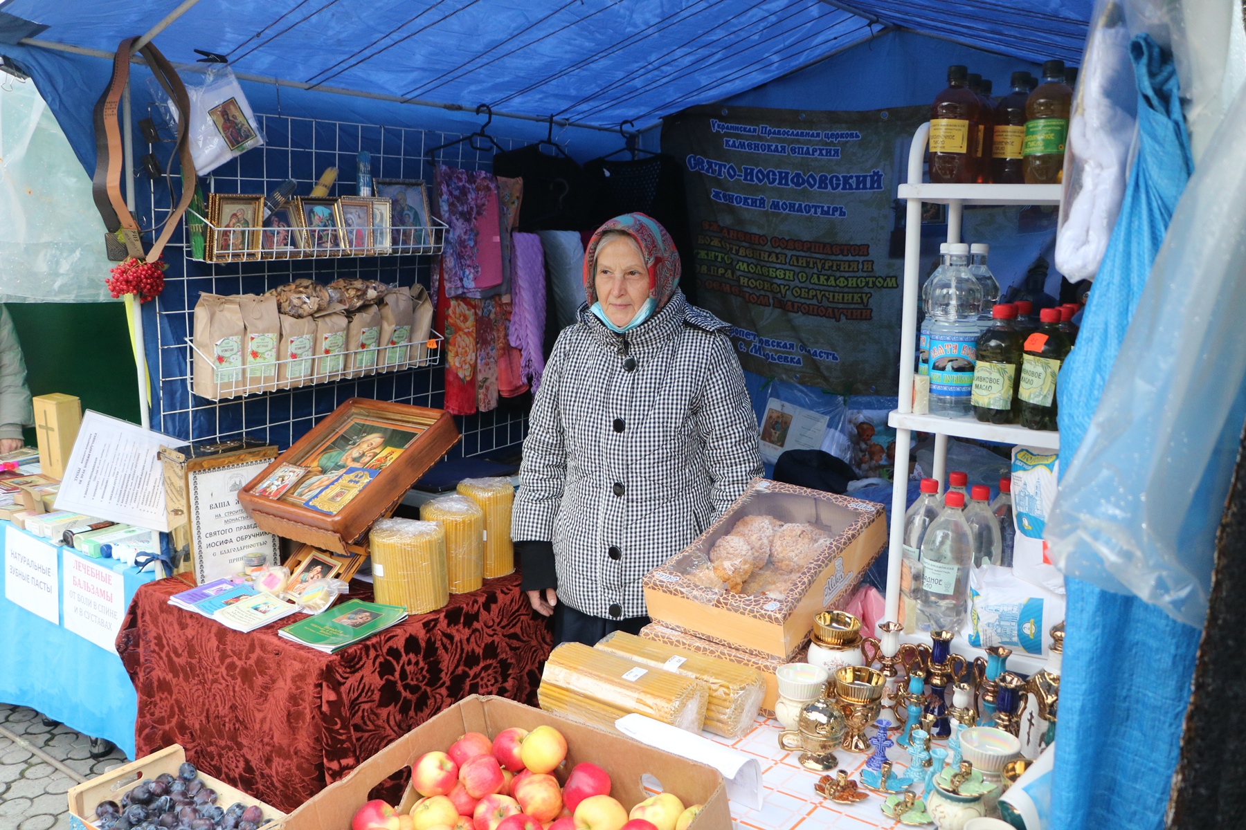 Посетители смогут ознакомиться и приобрести иконы, храмовую утварь, изделия декоративно-прикладного ювелирного искусств, ладан, керамику, свечи, мед, новинки литературы духовного содержания, аудио- и видеопродукцию и многое другое из православной продукции. На ярмарке также представлены разнообразные сорта меда.