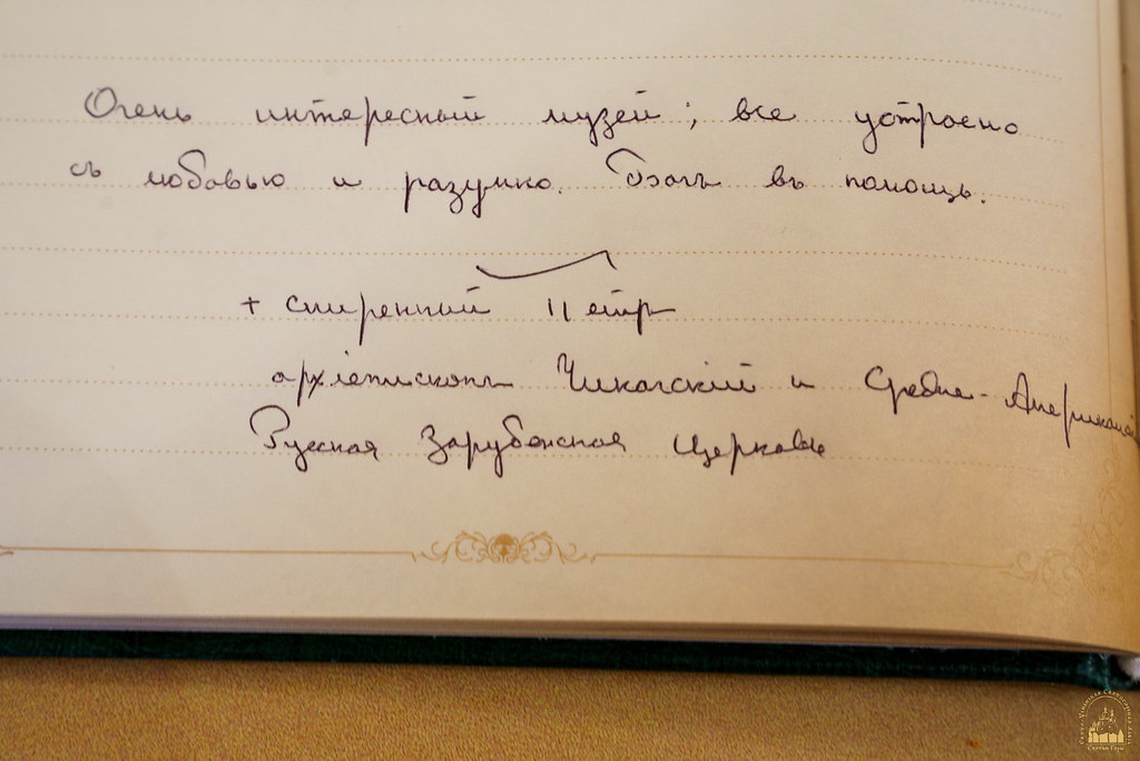 Об истории Лавры, собранных за последние 30 лет исторических реликвиях, иконах разных иконописных школ, начиная с XVI века, митрополит Арсений рассказал в залах лаврского музея и лаврской ризнице. Архиепископ Пётр оставил в книге отзывов посетителей музея запись с впечатлениями об экспозиции музея.