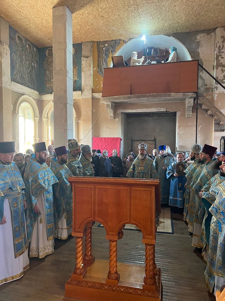 Архиепископ Варнава возглавил праздничные богослужения в Иверском монастыре Донецка, который восстанавливается после разрушения вследствие обстрелов.