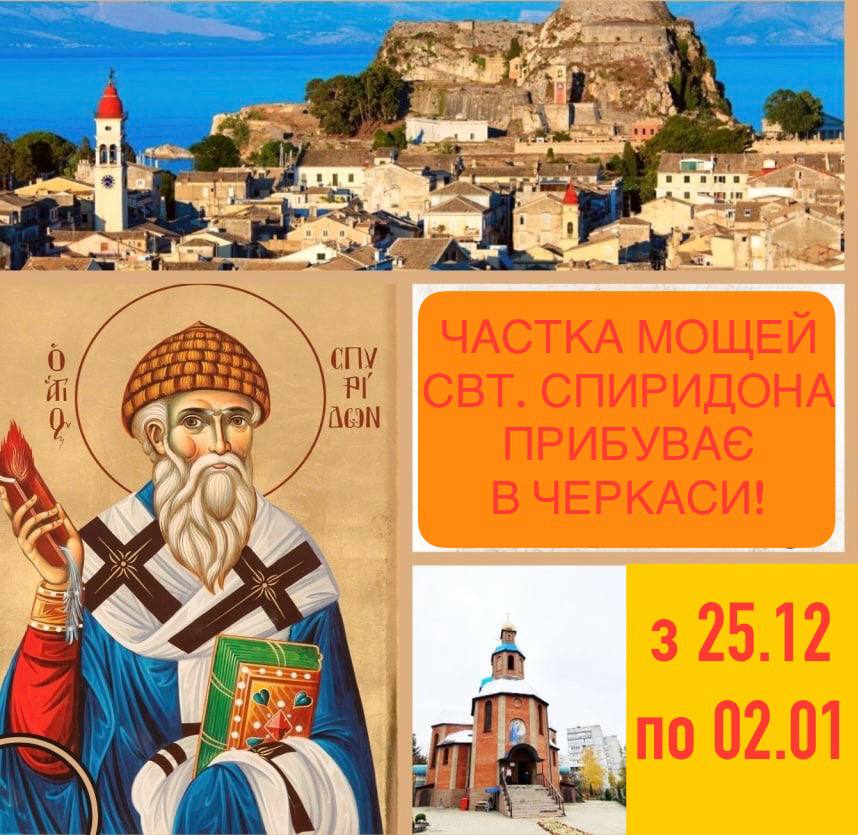 В Христо-Рождественское архиерейское подворье Черкасской епархии УПЦ привезут частицу мощей Святителя Спиридона Тримифунтского, сообщает Телеграм-канал «Черкасский паломник».