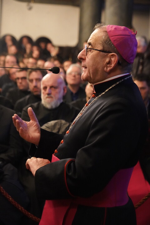 В своей речи на итальянском языке он упомянул о давних духовных связях Константинополя с Медиоланом, нынешним Миланом. А также отметил предстоящее 1700-летие Первого Вселенского Собора в Никее и запланированный визит папы Франциска в Турцию, чтобы вместе отметить эту историческую годовщину.