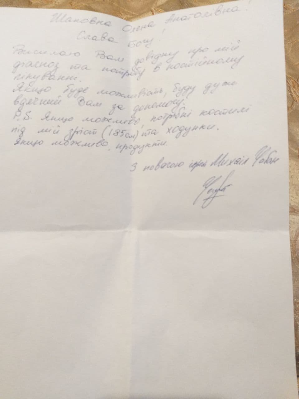 Пожертвования можно перечислить на карту ПриватБанка 4149 4991 1614 4997 (Чабан Михаил Степанович) или почтовым переводом УкрПочтой по адресу: индекс 27330, Кировоградская область, Александровский район, с. Красноселка, ул. Дейнеки, 14 (Чабан Михаил Степанович).
