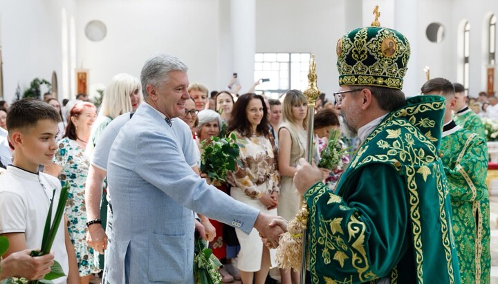 Экс-президент Украины Петр Порошенко, которого за вклад в становление ПЦУ неофициально называют «отцом Томоса», на Троицу помолился на литургии униатов в кафедральном соборе Киева.