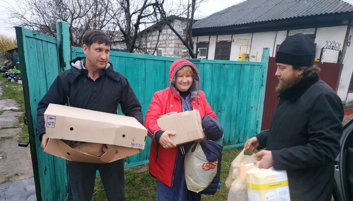 Гуманитарную помощь выделила Нежинская епархия, а передали секретарь епархиального управления протоиерей Валерий Дашко и благочинный 1-го Нежинского церковного округа протоиерей Михаил Борканин. Семьи получили продукты питания, моющие средства и предметы первой необходимости.