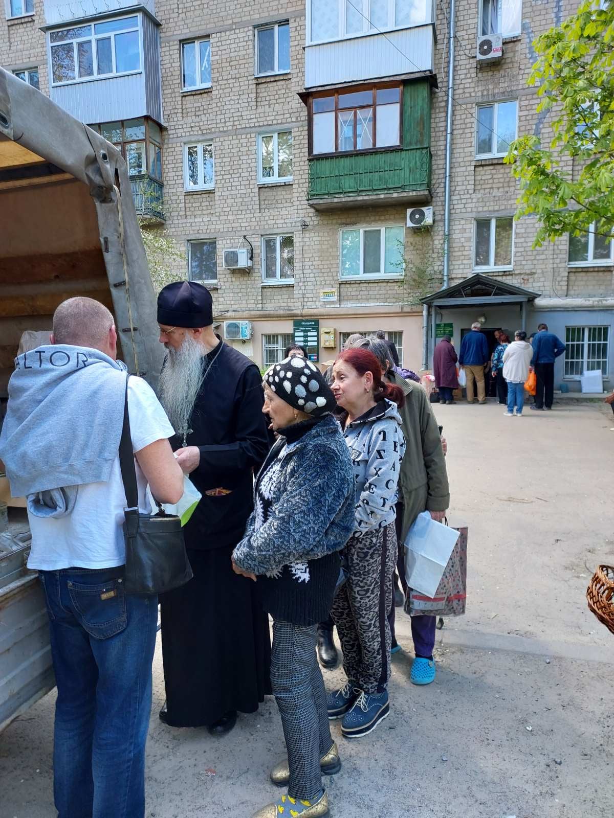 По благословению митрополита Харьковского и Богодуховского Онуфрия гумпомощь передали жителям поселка Жуковского в Харькове.