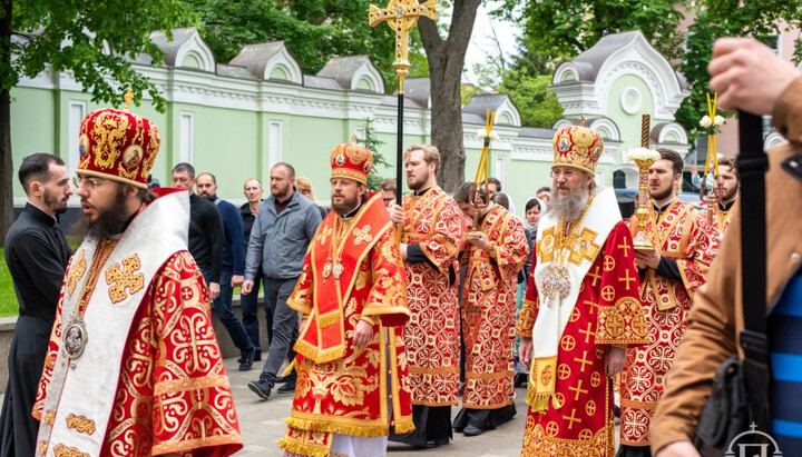 Предстоятелю УПЦ сослужили управляющий делами УПЦ митрополит Бориспольский и Броварской Антоний, епископ Барышевский Виктор, епископ Бородянский Марк, духовенство обители и гости в священном сане.