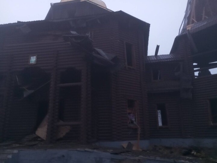 В сообщении опубликованы фотографии, на которых видно, что деревянное здание храма получило значительные разрушения. Повреждены стены и кровля, выбиты окна, разрушена колокольня.