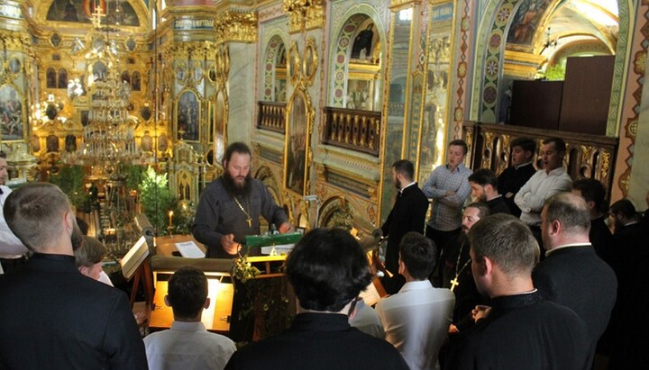 После Божественной литургии митрополит Сергий совершил благодарственный молебен, по окончании которого преподаватели и воспитанники семинарии поклонились чудотворным святыням Почаевской лавры: чудотворной иконе Богоматери, мощам святых угодников Иова и Амфилохия Почаевских и Стопе Божией Матери.
