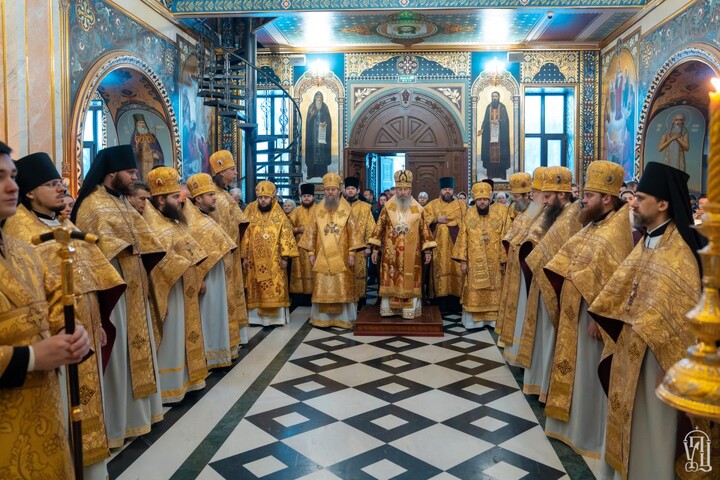 Богослужение Предстоятеля состоялось в храме в честь преподобного Агапита Печерского. Его Блаженству сослужили управляющий делами УПЦ митрополит Бориспольский и Броварской Антоний, Архиепископ Ирпенский Лавр, Архиепископ Бородянский Марк, братия Киево-Печерской лавры и духовенство.